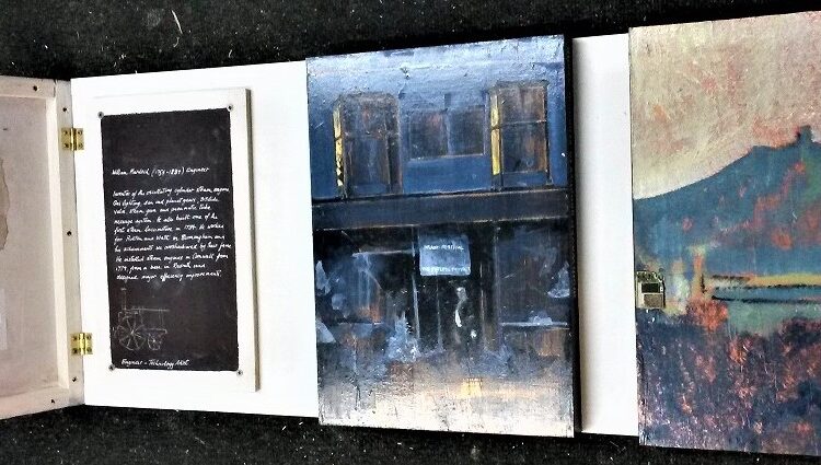 My response to this challenge of possible/impossible futures was to create a a series of narrative paintings relating to the past, present and future of Redruth. I encouraged interaction with the paintings by mounting them on the wall on hinges, revealing a second layer underneath containing the narrative. Shown at CMR Project Space in Redruth as part of a members exhibition.
